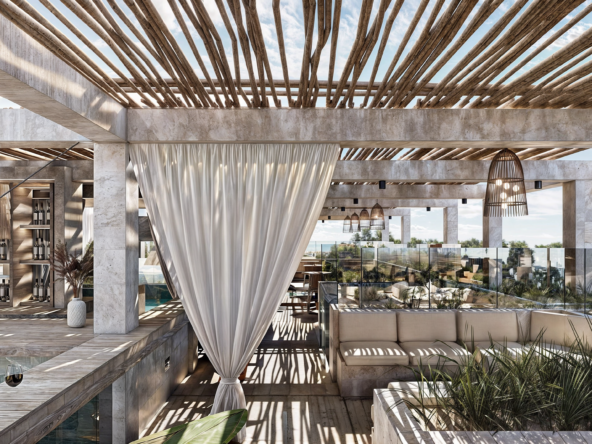 ABUD Tohokun Living es un desarrollo de 30 unidades en 7 niveles de 2 y 3 recamaras, 9 tipologías, de 100 m2 totales y los Roof Gardens de 124 m2, seguridad 24/7, estacionamiento, 2 elevadores, Rooftop, alberca, Solarium, área de comedores, terrazas, hamacas,  conserjería, Chef privado, transporte a la playa, acceso a yates, buceo y demás actividades acuáticas, entrega en mayo 2026.