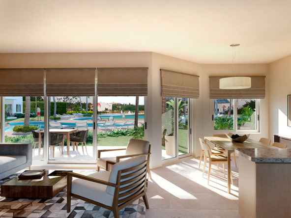 BLISS, conjunto NAUTICO de lujo, departamentos de 2 y 3 recamaras, 3 baños, de 112 y 114 m2, terraza privada, espectacular vista al mar Caribe, muelle propio, alberca, solarium, seguridad 24/7, acceso controlado, campo de Golf, Palapas, camastros, jardines, llave en mano.