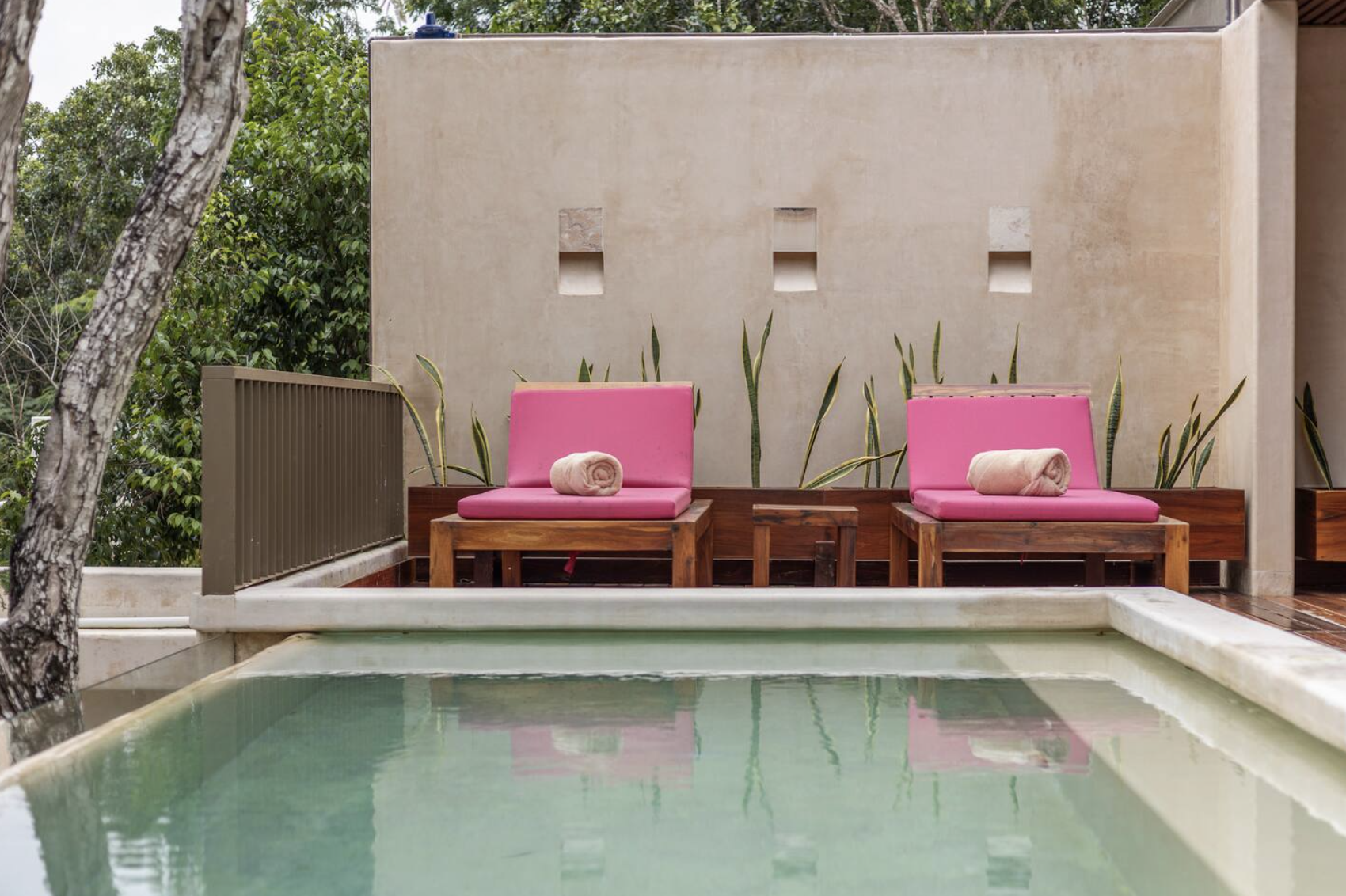 -Luxury sun loungers and a peaceful poolside relaxation area