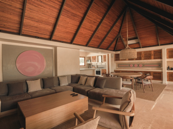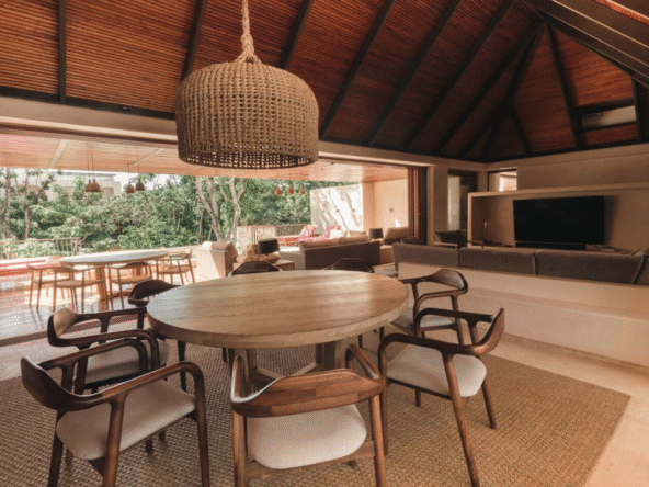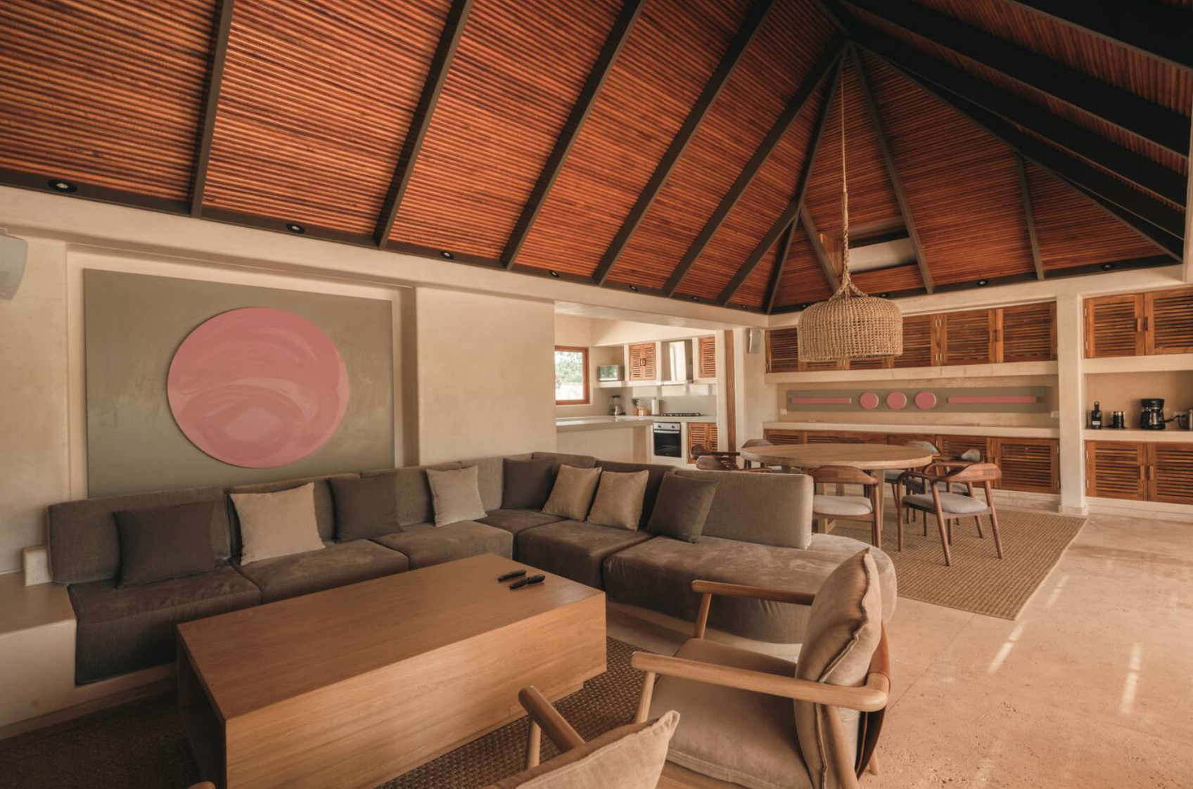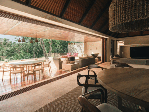 oasis with sliding glass doors that seamlessly retract into the walls, merging indoor and outdoor living. Every detail has been carefully curated, from handcrafted furnishings by local artisans to high-end