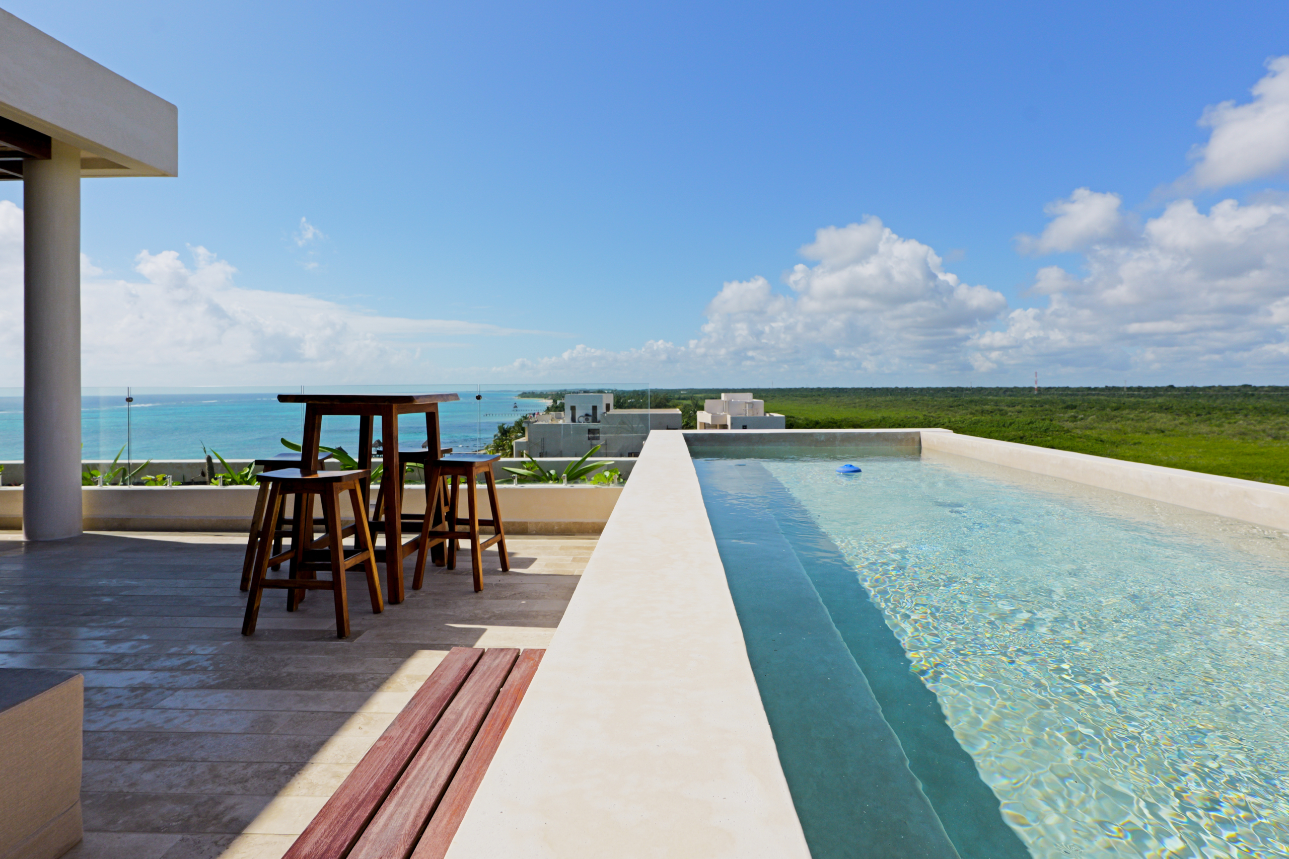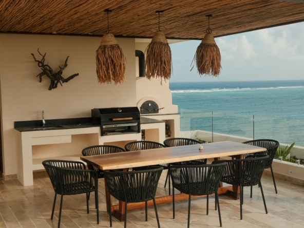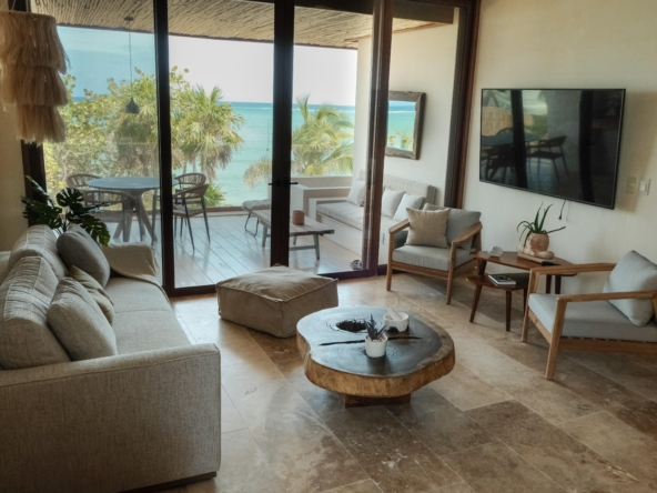 KAOBA, estupendo condominio frente al mar turquesa de Tulum, solo 3 departamentos disponibles, entrega inmediata, de 100, 140 y 200 m2 aproximadamente, seguridad 24/7, estacionamiento, Lobby, elevador, tratamiento de agua, energía eléctrica eficiente, alberca en la playa, playa privada, Gym, zona BBQ, Bar en el Lobby, llave en mano.