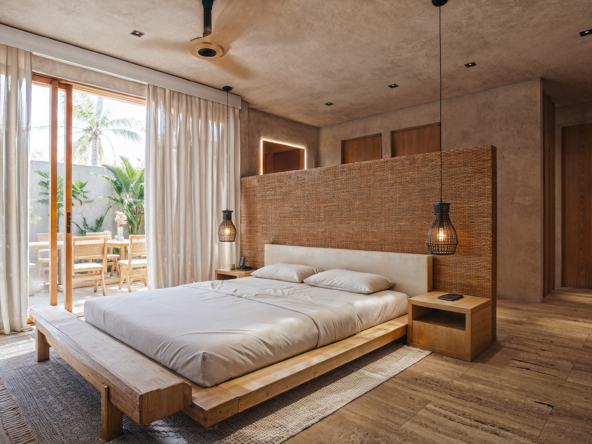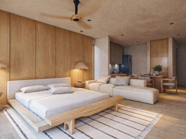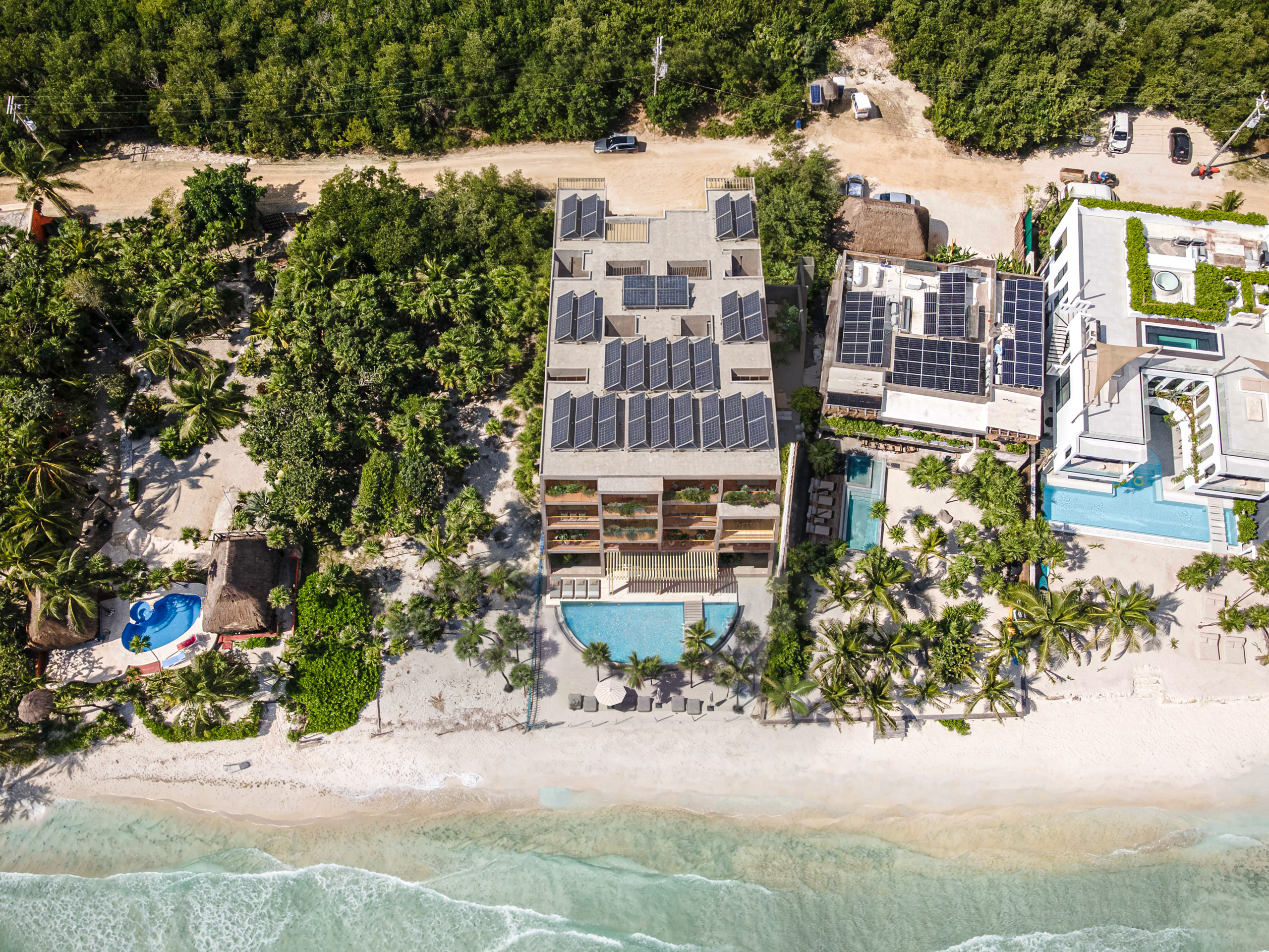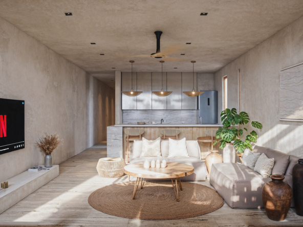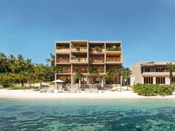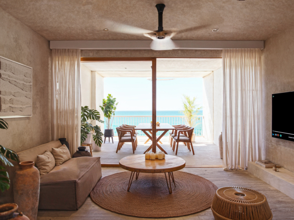 MARANTA, desarrollo de lujo con 18 unidades, en 3 niveles, 14 departamentos con vista al mar y 4 con vista a los manglares, desde 55 m2, hasta 242 m2, amenidades, Lobby, estacionamiento, seguridad, jardines, paneles solares, Beach club, alberca, terraza con cocina,sala y comedor con barra, alberca, gimnasio, baños, bar, entrega en julio 2027.