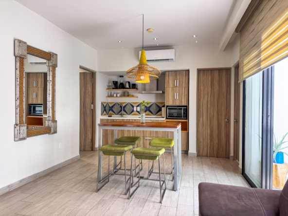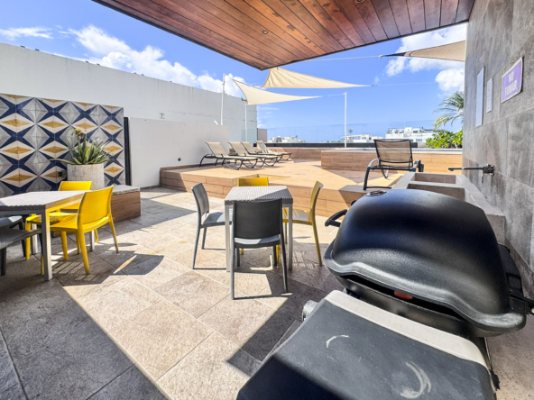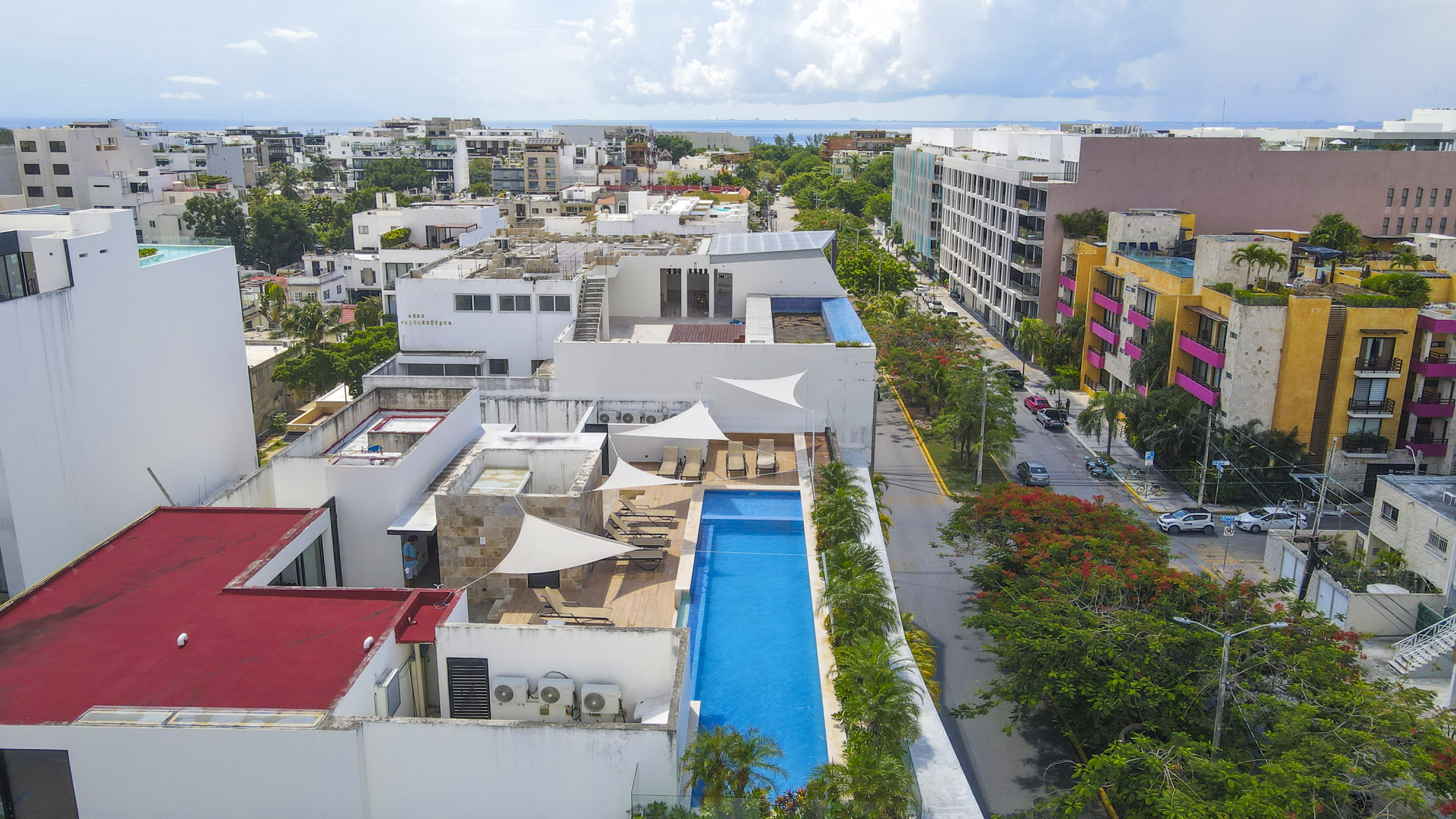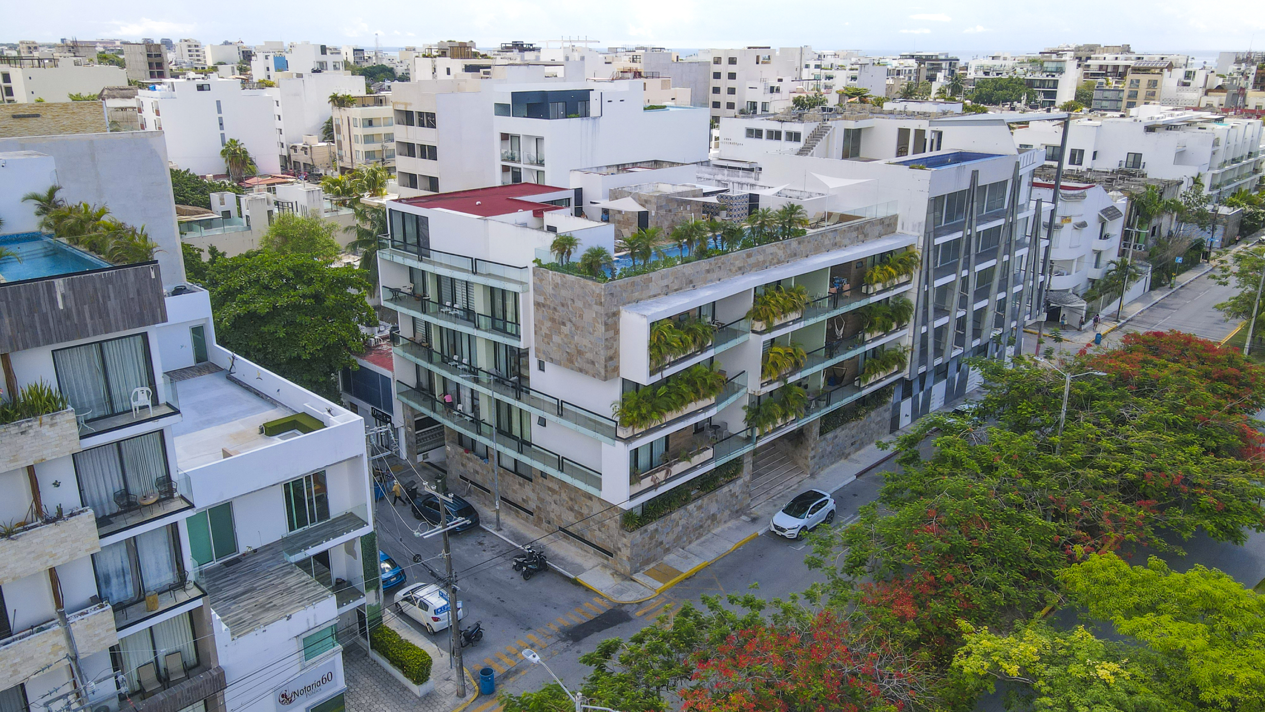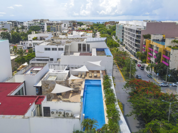 OPAL SUITES, es un desarrollo de apartamentos de 22 unidades en 4 niveles, sótano y Solarium, desde 52.21 m2, hasta 92.78 m2, de una y dos recamaras, con amplio baño con doble acceso, a 7 minutos caminando de la Quinta avenida y a 12 min. de la Playa, seguridad 24/7, Wifi en todas las áreas, aire acondicionado, estacionamiento subterráneo para 16 autos, Lobby recepción, lavandería, gimnasio, vapor, Rooftop con alberca y asador, solarium, llave en mano.