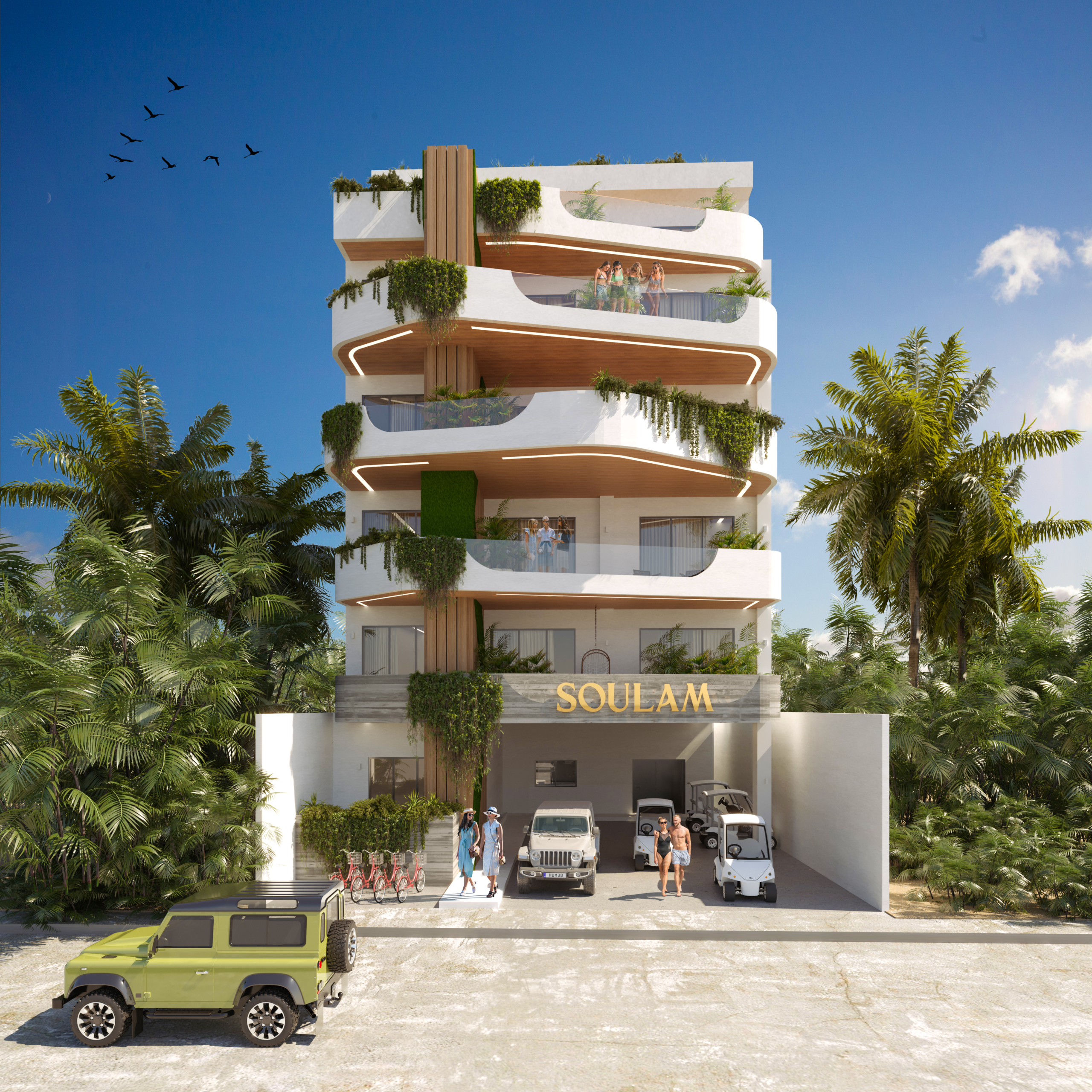 SOULAM, moderno edificio de solo 20 condominios, estudios de 40 m2, hasta PH de 155 m2, seguridad 24/7, CCVT, elevador, Looby, estacionamiento, conexión eléctrica para carga de automóviles, Valet Parking, Lavanderia, Rooftop, área de asadores, Alberca infinity, Solarium , entrega en noviembre de 2026.