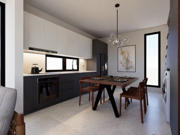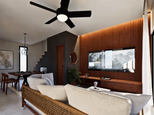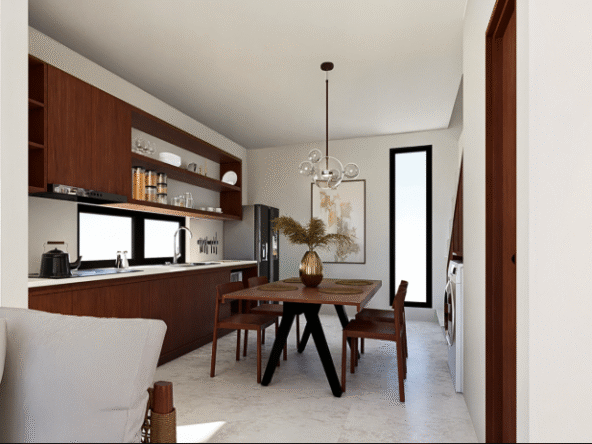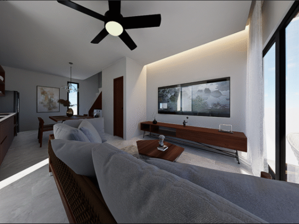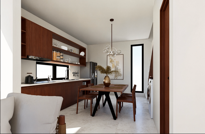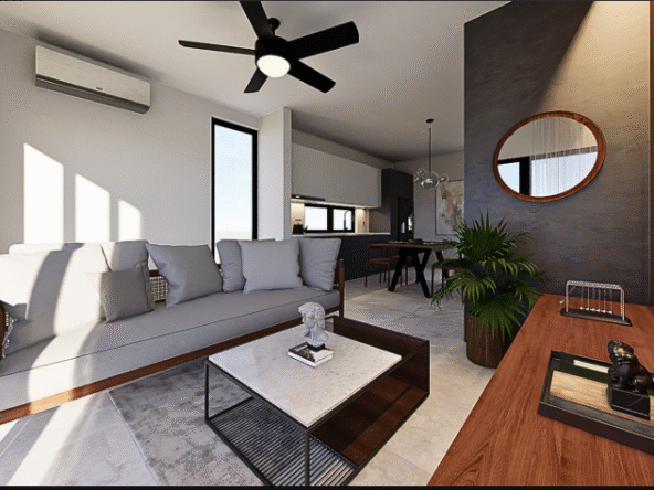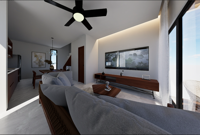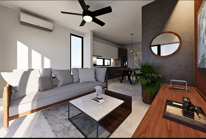 Una distribución inteligente y eficiente de 61.5 m² (662 ft²) diseñada para la comodidad y la simplicidad. Incluye terraza privada, sala de estar abierta, gabinetes de cocina de madera, estufa empotrada y un baño completo. Una combinación perfecta de diseño moderno y practicidad por $209,000 USD.