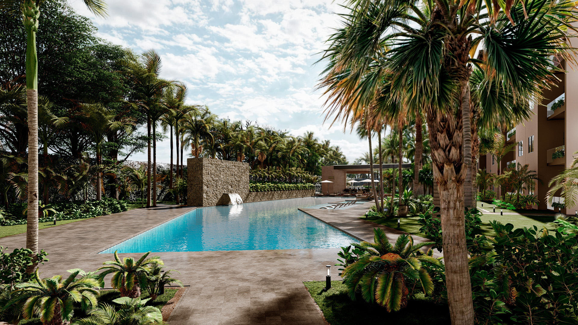XELEST PARADISE LIVING, desarrollo de 57 unidades en 7 niveles, departamentos de 3 recamaras con 122.33 m2, Acceso controlado con vigilancia, Motor Lobby, estacionamiento, Recepcion, alberca, zona Kid, asoleadero, zona de asadores, jardines, jacuzzi, cancha de Padel, gimnasio, zona de yoga, baños, vapor, Sport Bar, coworking, entrega en el verano de 2026.