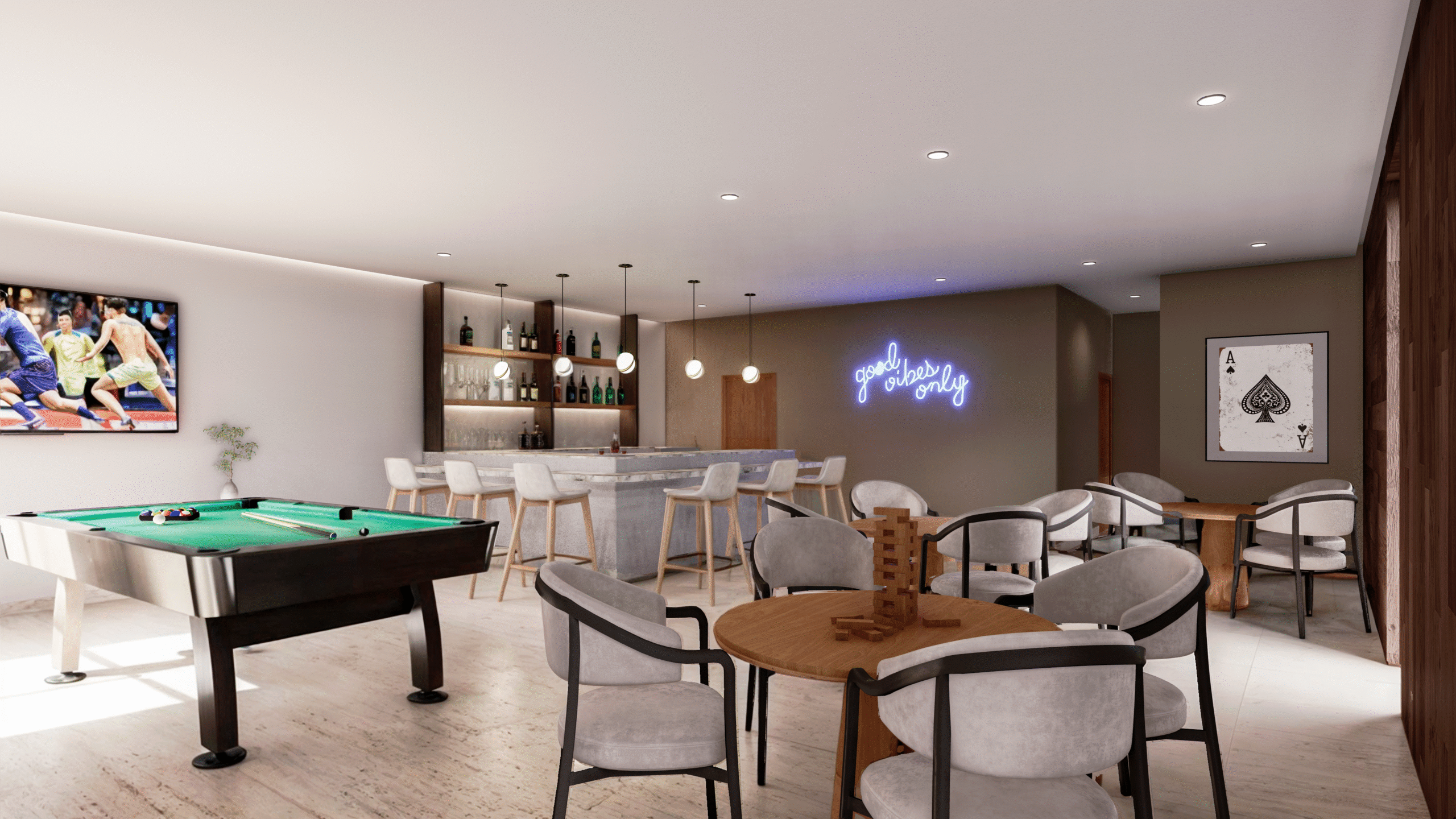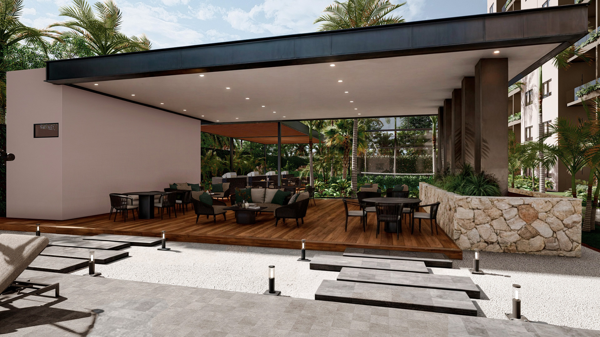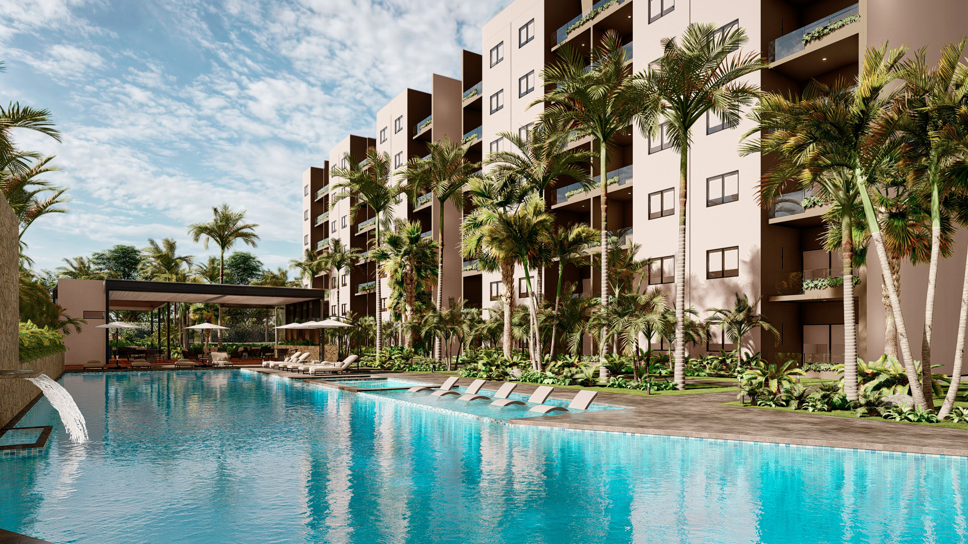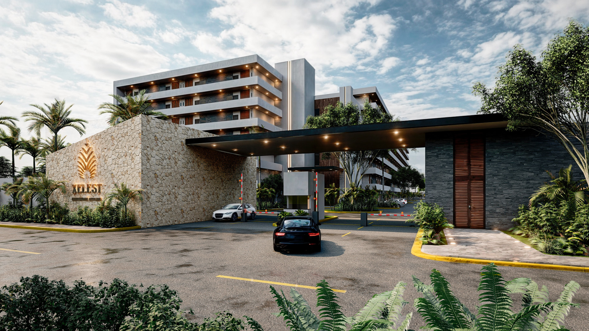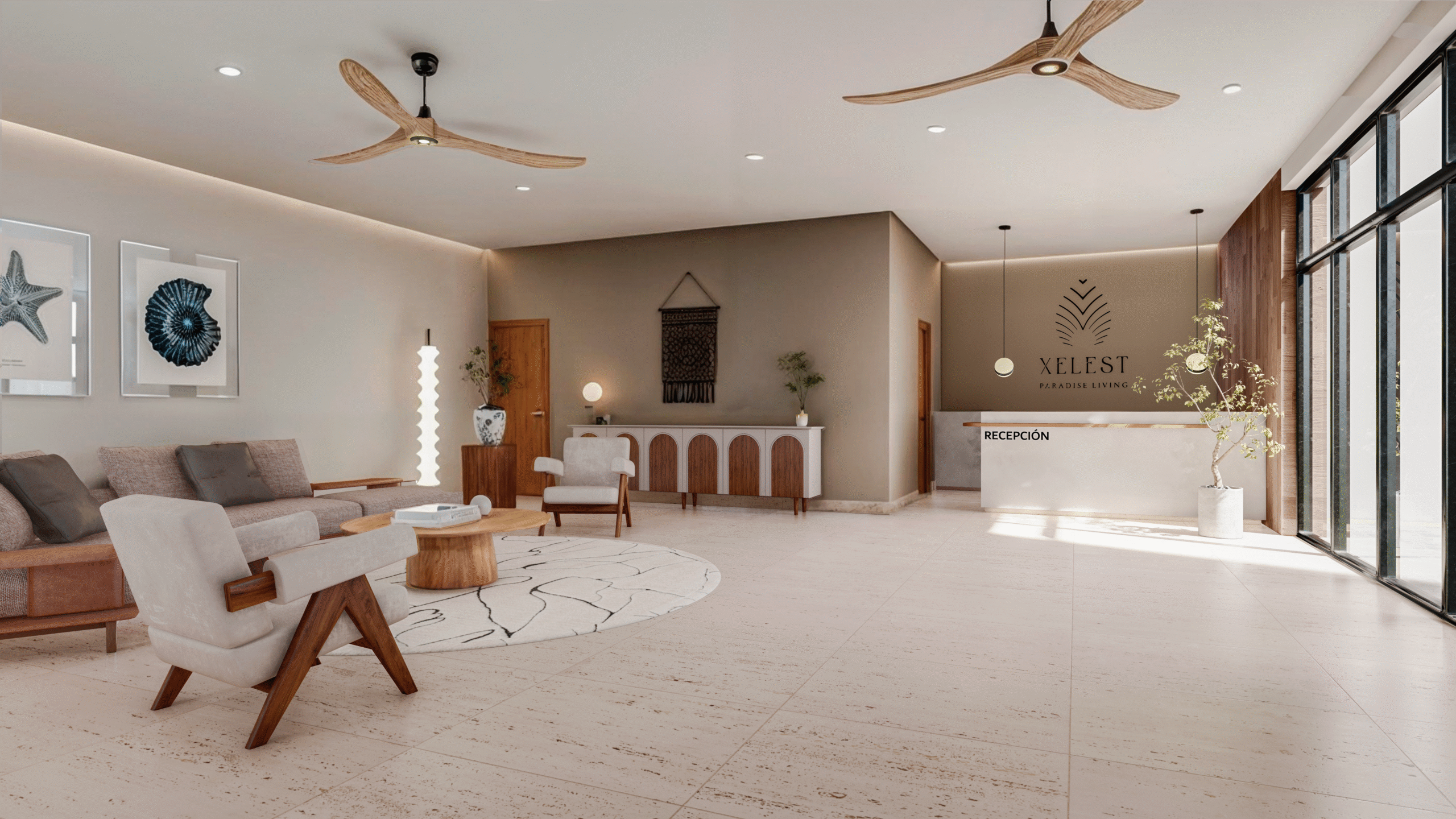 XELEST PARADISE LIVING, desarrollo de 57 unidades en 7 niveles, departamentos de 3 recamaras con 122.33 m2, Acceso controlado con vigilancia, Motor Lobby, estacionamiento, Recepcion, alberca, zona Kid, asoleadero, zona de asadores, jardines, jacuzzi, cancha de Padel, gimnasio, zona de yoga, baños, vapor, Sport Bar, coworking, entrega en el verano de 2026.