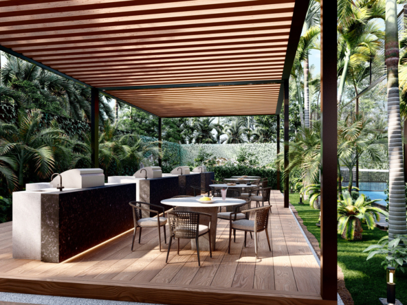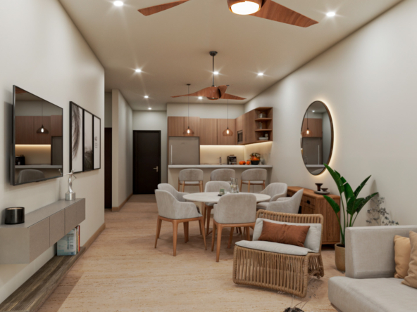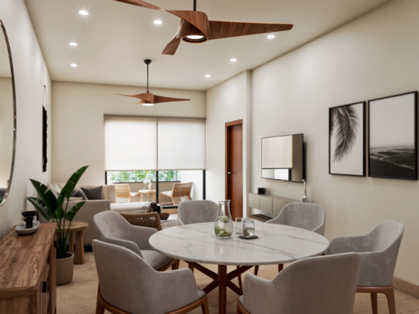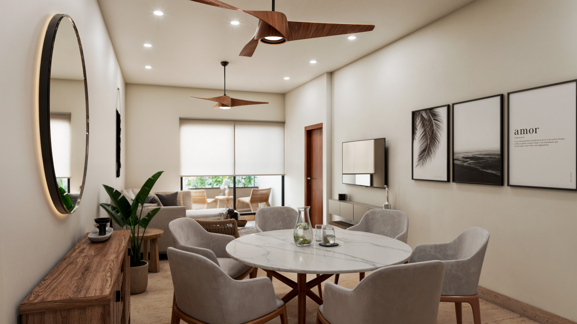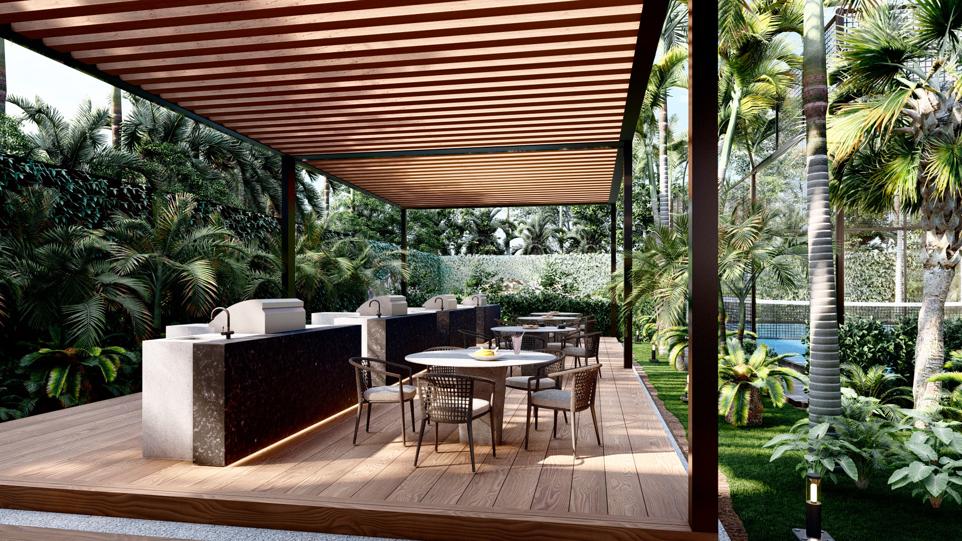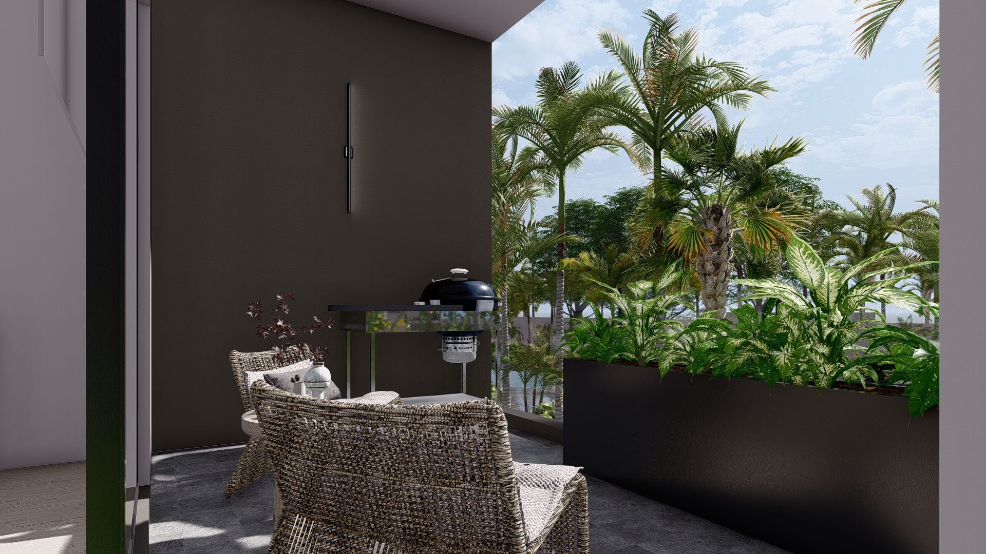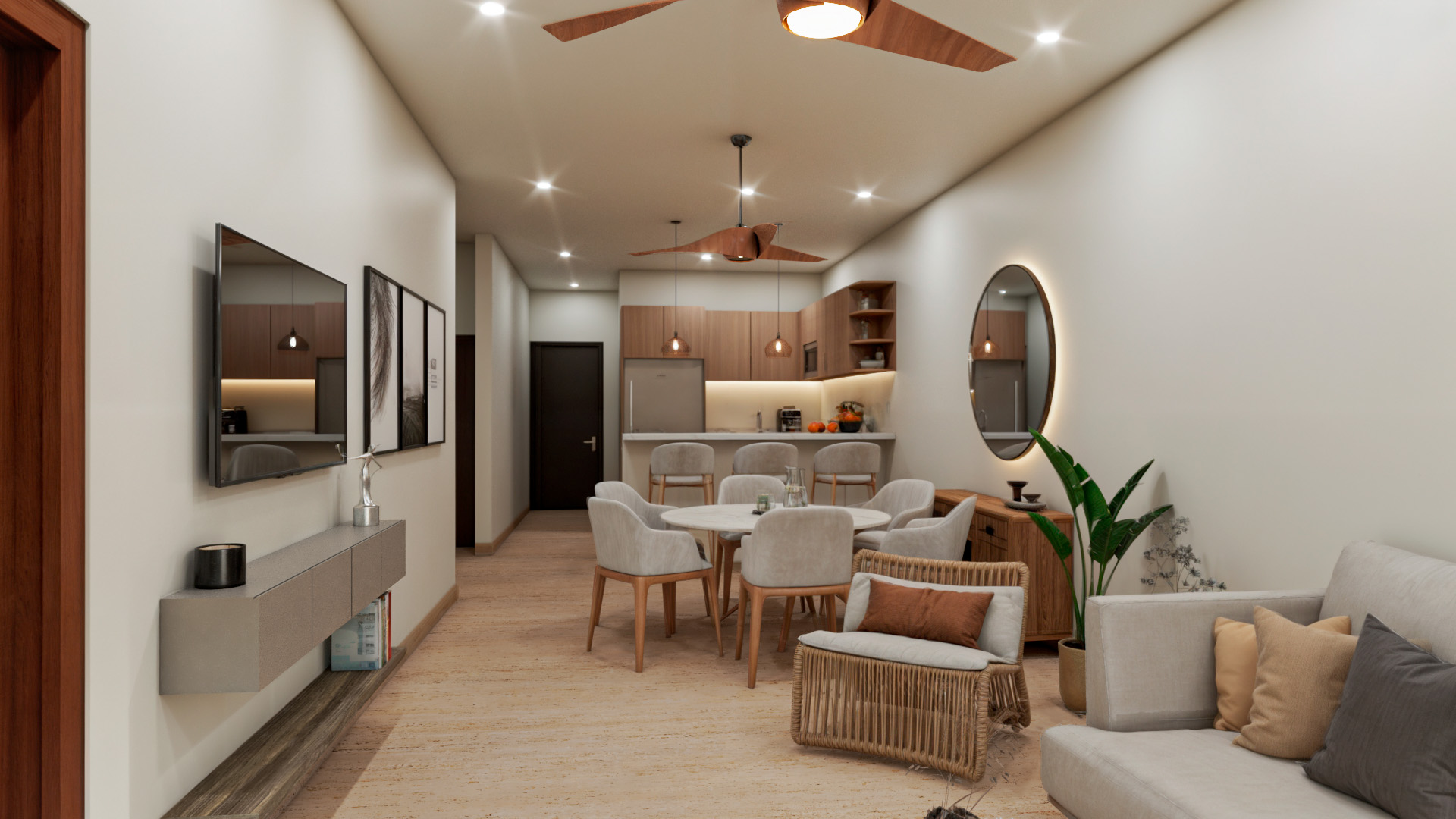 XELEST PARADISE LIVING, desarrollo de 57 unidades en 7 niveles, departamentos de 3 recamaras con 122.33 m2, Acceso controlado con vigilancia, Motor Lobby, estacionamiento, Recepcion, alberca, zona Kid, asoleadero, zona de asadores, jardines, jacuzzi, cancha de Padel, gimnasio, zona de yoga, baños, vapor, Sport Bar, coworking, entrega en el verano de 2026.